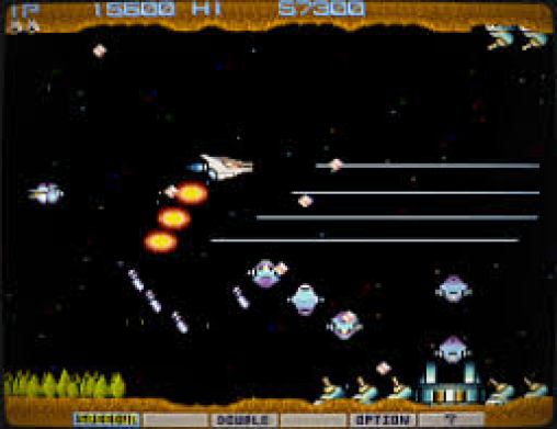 ファミコンはクオリティーはともかく、人気のあるゲームを移植することに長けていたように思う、グラディウスというシューティングゲームですがアーケード版と比べると格段に完成度は下がりますが、難易度は子供向けになってるのかな?と思う。 アーケード版はオプションというパワーアップで最大4個まで追加できるのに対し、ファミコン版は2個までで、バリアというパワーアップはアーケード版は、時機の前に丸い盾みたいなものが付いて前方の攻撃だけ守ることができるが、ファミコン版は同じように丸いのが2個付いて時機全体を攻撃から守ってくれるといった感じで簡単にやられないようになっていた。
